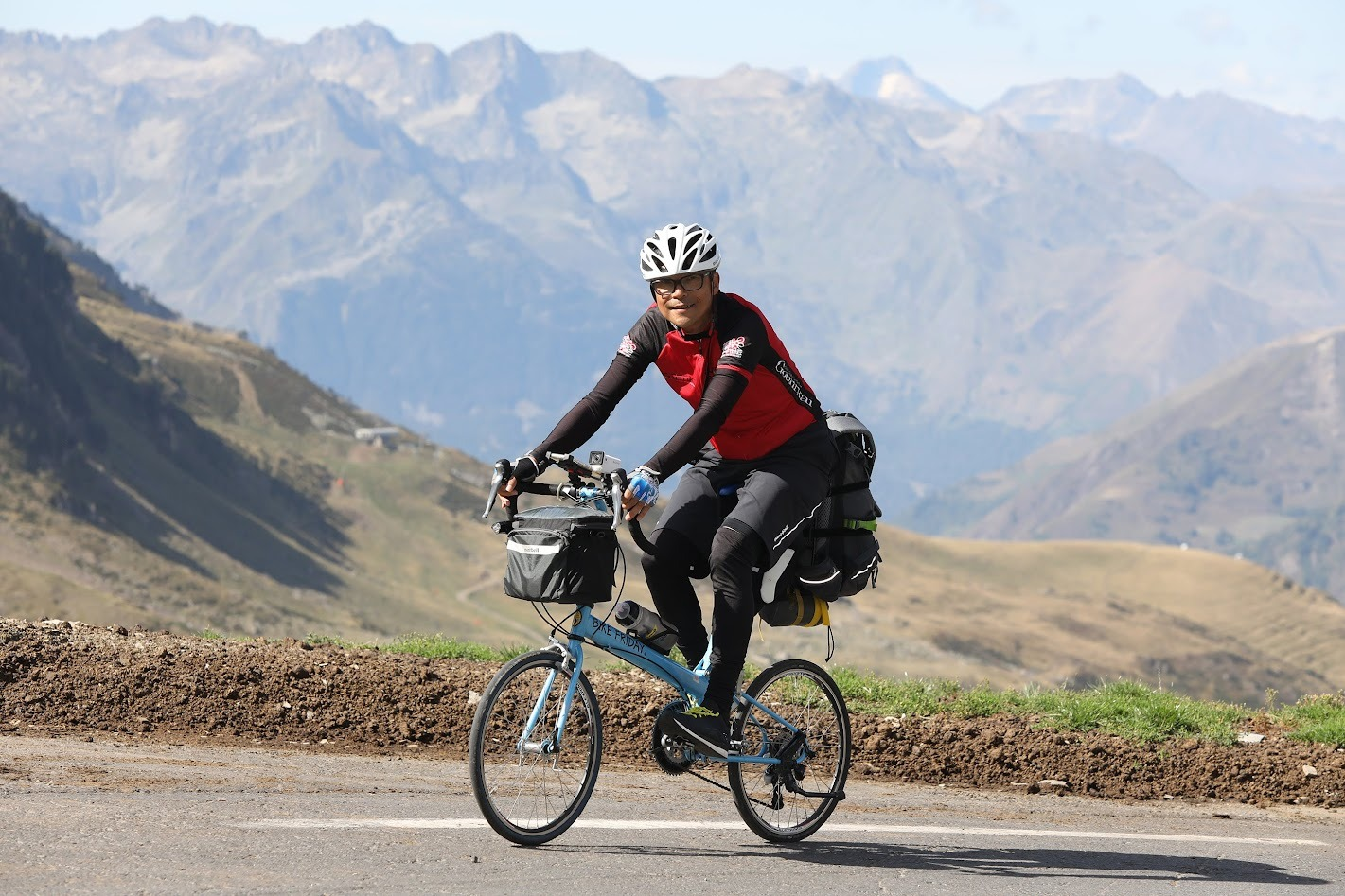 これは、2018年の9月。 私が、フランスとスペインの国境にある、ピレネー山脈の「ツールマレー峠」という有名な激坂を、自転車(ミニベロ)でヒーヒー言いながら登っている時の写真です。 (『ミニベロを持って海外に出かけよう』という、私の別のブログの原点とも言える旅ですね)